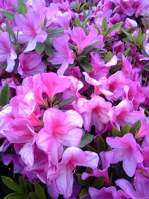 現地に着いたのが5時前で、もう神社内には入れなかったので、 下からのつつじ達の群れしか見れなかった。 だけど・・・ 神社を出た道路に咲いていたつつじの方が綺麗だと 思った私たち↓(笑) 2005.5月3日(火) つつじ満開の根津神社にて 私たちの家の前には、比較的大きい道路が走っていて、その道路沿いには時期早々から、とても綺麗なつつじが咲いていました。 それを毎日見ているからか、「もっと綺麗なつつじ見たいねー!」という欲望(笑)を満たすため、この”満開神社”参拝。 向かったのは夕方。路駐をする場所もなかったので、安い駐車場を探してから車を停め、神社へ。私たちを見下ろすつつじ郡に、門の前で参拝のためのお金を用意していた所に”蛍の光”が流れ出し、、、悲しきかな下での花見に。でも充分に綺麗だった。(彼女はイマイチ納得いかない様子だったが)