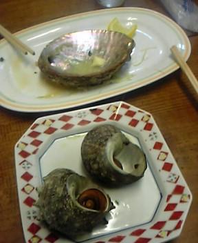 | ナギがネットで先もって検索していた某さざえのお店。私は滅多に 食べれない高級貝の写真を撮ろう!!と、意気込んでいた。 ・・・が、完食してから写真のことを思い出す。(で、コレ^^;) あわびはバター焼きじゃなくて、マーガリン焼きだった。 「せっかくの高級貝なのに、調理の仕方がもったいない!!!」 ・・・と、そうだ。それ以前に、あることに気づいていたナギ。 「このあわび、肝がないのはどうしてだろう・・・?」 「え??」 キモ、って??? 「あ!新鮮じゃないから、肝を取ってるんだなー」 ゥエ・・・?? 私にゃまるで意味が、すっかりさっぱり、解りませーん! 「新鮮な貝じゃないと肝は食べれないから、捨てたんじゃないかな」 はぁ〜〜。 そうなんだぁあああ!(感) へぇーーーーーーーー。 |